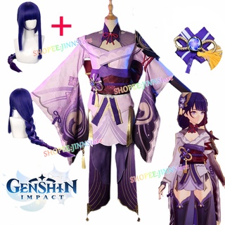 The full genshin impact raiden shogun costume includes the coat, shirt, trailing,.